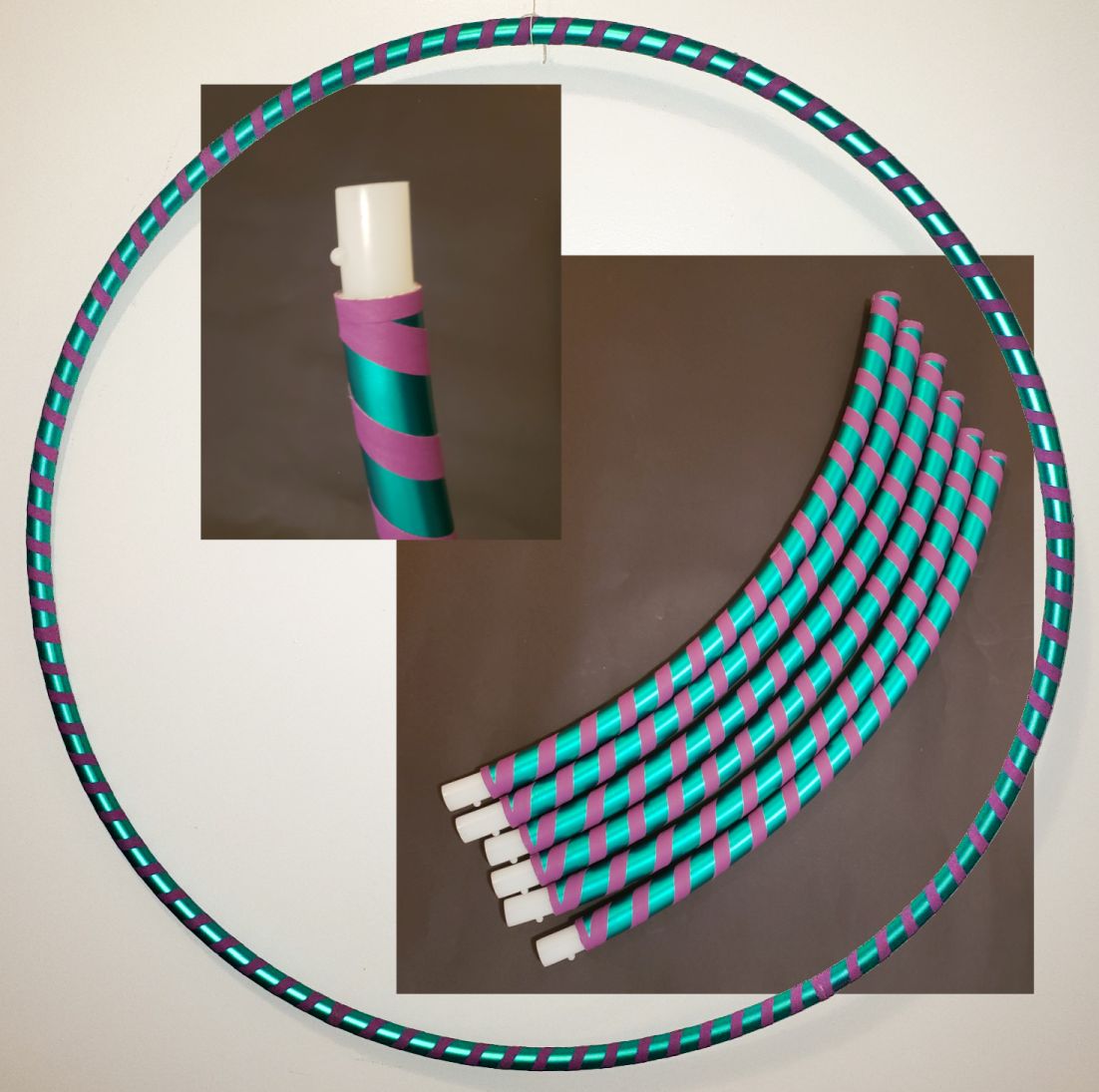 Sectional hoop build with 7/8 inch PEX tubing, made with quality tape with EZClip buttons for easier opening, and invisible Ghostlock rivets for a perfect finish. It separates into six interchangeable sections and is easily assembled for easy transport, even on the plane! Personalize your hoop with our large choice of tape colors.